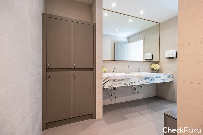 ในห้องน้ำได้สุขภัณฑ์เหมือนห้องที่แล้ว แตกต่างกันที่ Layout พื้นที่ใช้งานทั้งส่วนเปียกและส่วนแห้งกว้างมากขึ้น