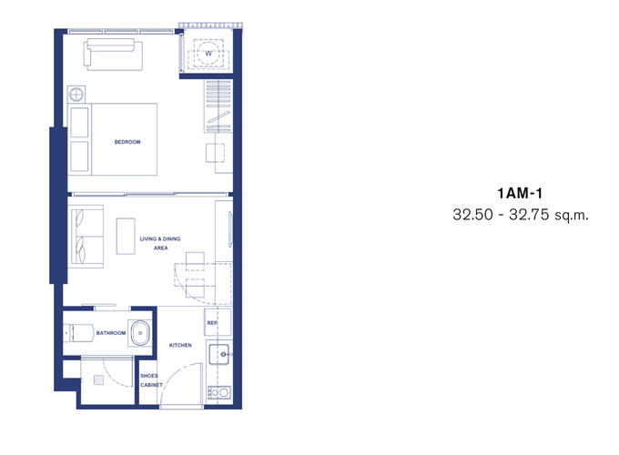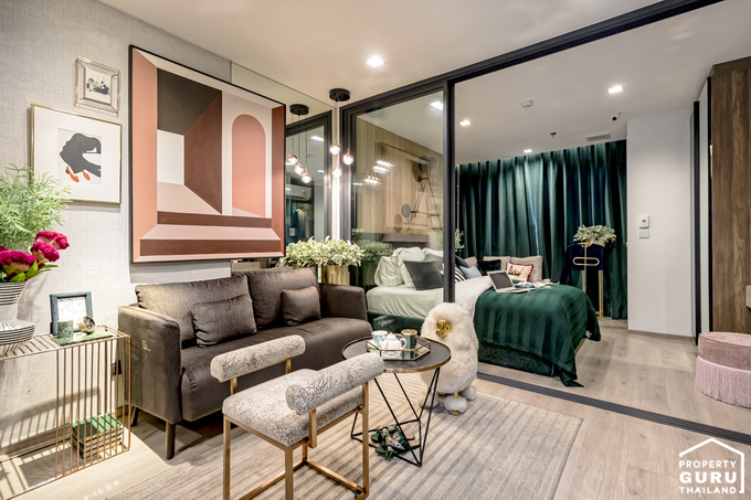 - ห้องตัวอย่างแบบ 1 ห้องนอน 1 ห้องน้ำ (S) ขนาด 32.50 - 32.75 ตร.ม.