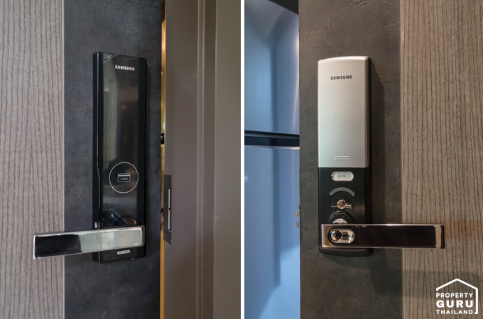 ที่นี่จะมี Digital Door Lock ของ Samsung ให้ สามารถใช้งานได้ ทั้งการใส่พาสเวิร์ด ใช้การ์ด และใช้กุญแจค่ะ
