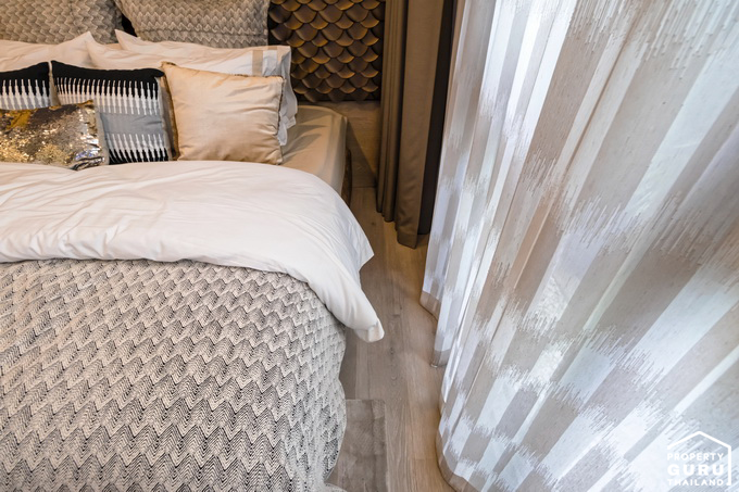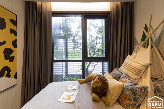 พื้นที่ข้างเตียงยังพอมีให้จัดวางโซฟาพักผ่อนได้อีกค่ะ