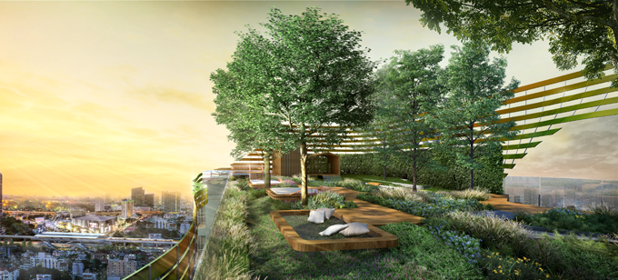 FLOATING NEST สวนชั้นบนสุด ที่ให้ความรู้สึกเหมือนนั่งพัก ชมวิวอยู่บนยอดไม้