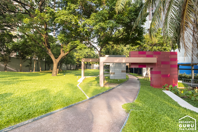 สวนส่วนกลางภายในโครงการมีต้นไม้ใหญ่ และทำทางเดินไว้เรียบร้อย