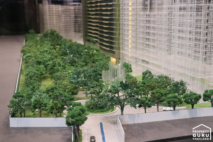 สวนส่วนกลางขนาด 8 ไร่ และมีสวนที่ชั้น 2 ส่วนชั้น 22-23 เป็นพื้นที่ส่วนกลาง