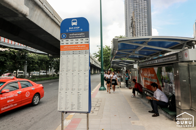 ข้างล่างเป็นป้ายรถเมล์ ซึ่งป้ายนี้รถเมล์ผ่านเยอะมากๆ