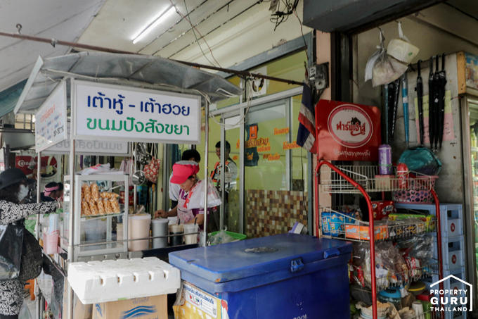 ฝั่งขวามือจะเป็นอาคารพาณิชย์ขายอาหาร ขนม เป็นส่วนใหญ่