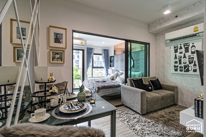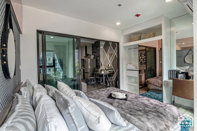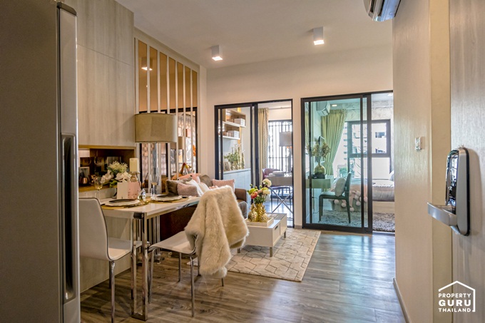 ห้องพักอาศัยออกแบบในสไตล์ Loft ที่โดดเด่นด้วยห้องเพดานสูง 2.7 เมตร โดยขายแบบ Fully Furnished รายการเฟอร์นิเจอร์ มาตรฐาน Digital Door Lock, ชุดครัว Built-in, เตาไฟฟ้า, เครื่องดูดควัน, อ่างล้างจาน, ชุด Smart Home พร้อมติดตั้ง, เตียงนอน ขนาด 5 ฟุต, ตู้เสื้อผ้า, โต๊ะเครื่องแป้ง พร้อมเก้าอี้สตูล, เครื่องปรับอากาศ ห้องละ 2 เครื่อง ขนาด 9,000 BTU ที่ห้องนอน และขนาด 2,000 BTU ที่ห้องนั่งเล่น, สุขภัณฑ์ในห้องน้ำ พร้อมฉากกั้นอาบน้ำ มีห้องพักให้เลือก 4 แบบ