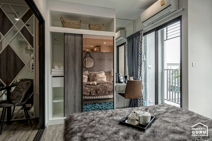 ในห้องตัวอย่างทางโครงการออกแบบเป็นห้องทำงานให้ดูเป็นไอเดียสามารถ Built-in เป็นตู้สำหรับเก็บของ