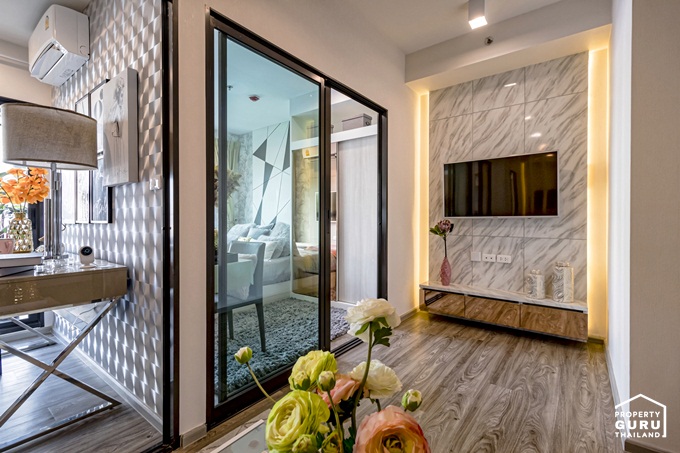 ห้องนี้ได้ระยะดูทีวีที่กว้างมากกว่า 3 เมตร ติดตั้งทีวีขนาดใหญ่ได้เลย