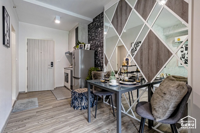 ตกแต่งด้วยกระจกเงาทำให้ห้องดูกว้าง สว่าง ไม่อึดอัด