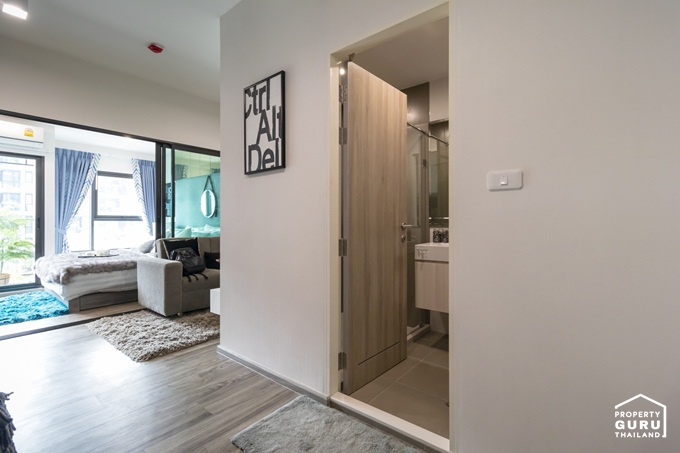 Type A พื้นที่ใช้สอย 1 Bed 29.44 ตร.ม. Type B พื้นที่ใช้สอย 1 Bed Plus 34.45 ตร.ม. Type C พื้นที่ใช้สอย 24.61 ตร.ม. Type D พื้นที่ใช้สอย 34.40 ตร.ม วันนี้เราจะพาไปชมด้วยกัน 2 แบบ เป็นห้องแบบ 1 Bedroom ขนาด 29.44 ตร.ม. และ 1 Bedroom Plus ขนาด 34.45 ตร.ม. เริ่มจากห้องแรก