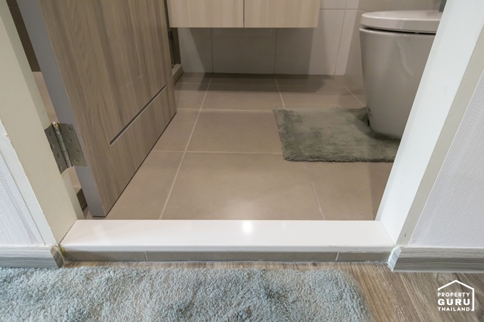 ตัวจบประตูสีขาวยกสูงขึ้นมาจากโถงทางเดินประมาณ 3 ซม.