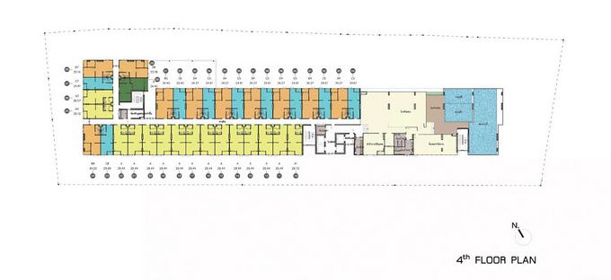 ขึ้นมาที่ชั้น 4 ทางซ้ายเป็นประตูเข้าส่วนพักอาศัย ส่วนทางขวาเป็นทางไปโซนส่วนกลาง