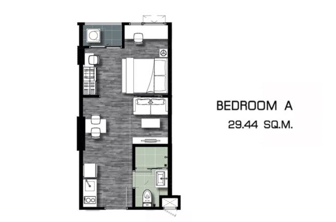 1) ห้องแบบ 1 Bedroom พื้นที่ใช้สอยขนาด 29.44 ตร.ม.
