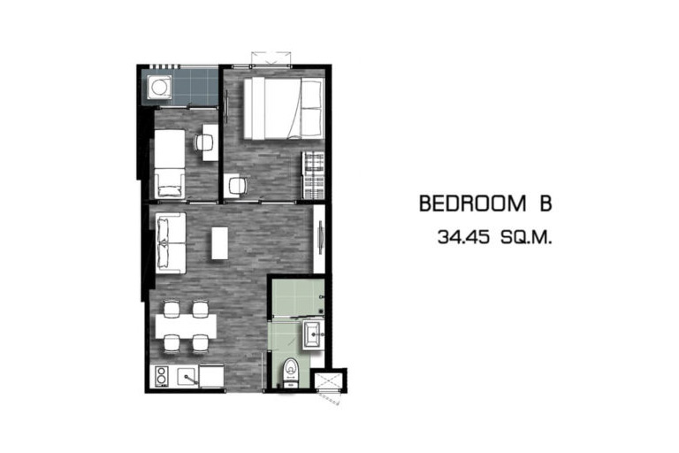 2) ห้องแบบ 1 Bedroom Plus พื้นที่ใช้สอยขนาด 34.45 ตร.ม.