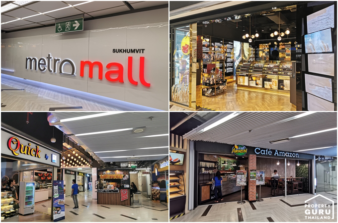 ภายใน Metro Mall มีร้านอาหาร ร้านกาแฟ และร้านขายของใช้หลากหลายร้าน