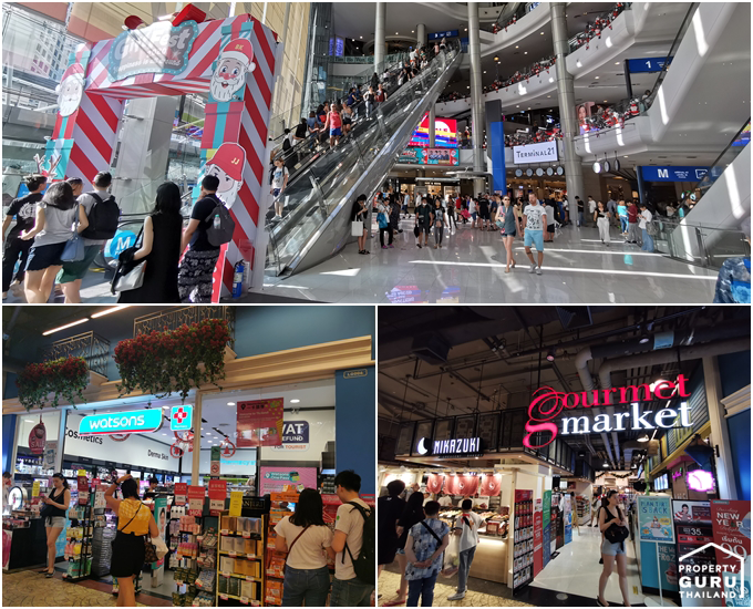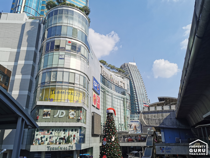 Terminal 21 อยู่ติดกับรถไฟฟ้า BTS สถานีอโศก ห่างจากโครงการประมาณ 350 เมตร
