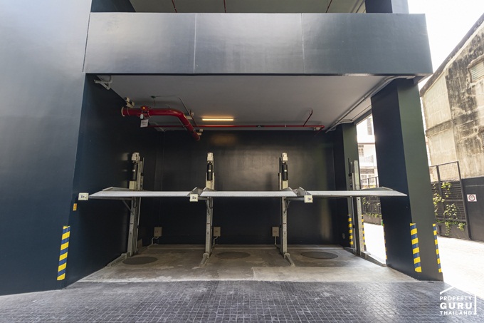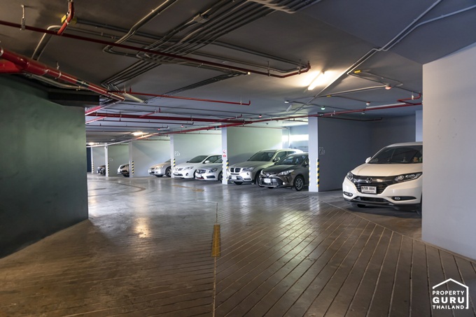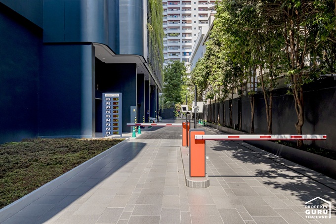 การเดินรถภายในโครงการบางช่วงจะเป็นแบบ 2 ทางสวนกัน โดยจากประตูทางเข้าโครงการขับตรงเข้ามาเป็นทางบังคับเลี้ยวขวา ก็จะเจอไม้กระดกกั้นอยู่ ให้ขับตามลูกศรเพื่อไปยังทางเข้าที่จอดรถ โดยพื้นที่จอดรถจะกระจายอยู่ที่บริเวณชั้น 1 - 10 และบริเวณรอบอาคาร ทั้งโครงการสามารถจอดรถได้ประมาณ 371 คัน พร้อม EV Charger และที่จอดรถ Super Car
