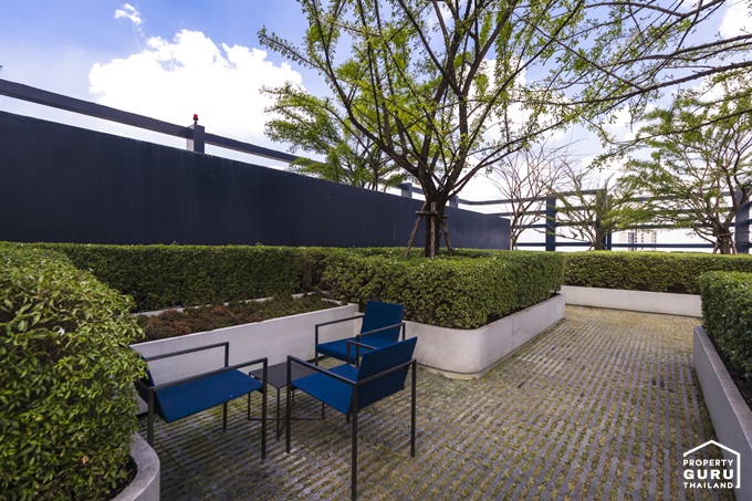 ออกแบบให้มีม่านน้ำตก ซึ่งทางโครงการจะเปิดน้ำเป็นเวลา พร้อมมุมนั่งเล่นมาให้ด้วย