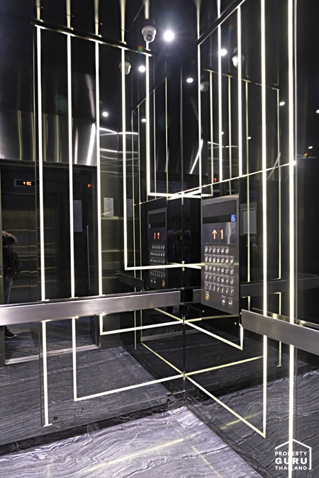 ภายในลิฟต์ตกแต่งด้วยกระจก ทำให้ลิฟต์ดูกว้างขึ้น เดินเส้นให้ดูโมเดิร์นสวยงาม ใช้ระบบ Key Card Access