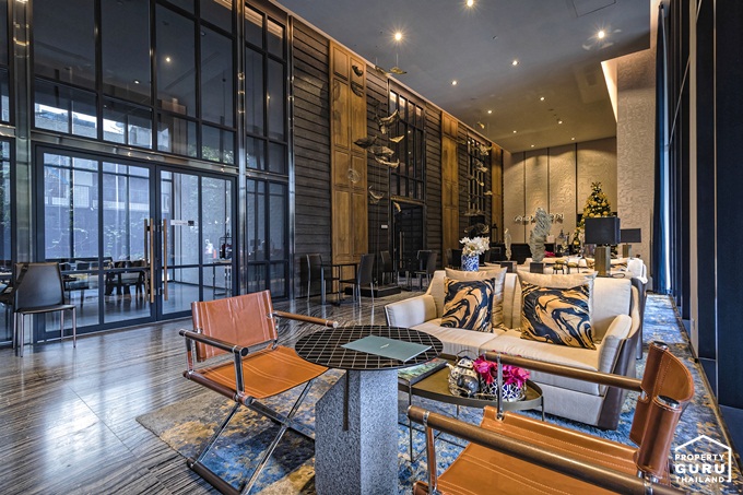 เปิดเข้ามาจะเจอกับบรรยากาศของ Lobby ออกแบบให้เพดานสูงโปร่งแบบ Double Volume