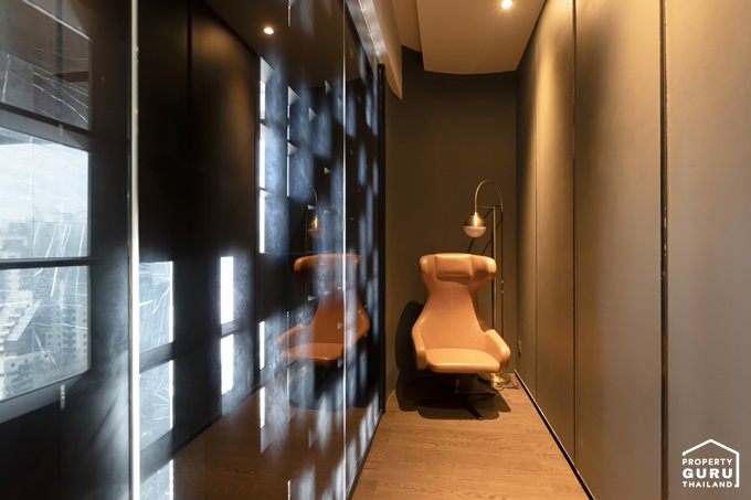 เข้ามายังคงคุมโทนตกแต่งด้วยกระจกเงาโทนสีดำ มีโซนนั่งเล่น