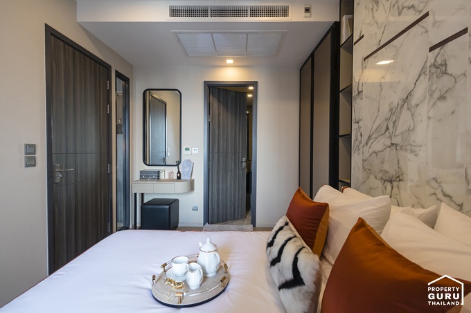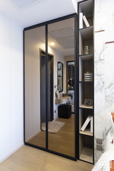 อีกฝั่งของเตียงสามารถ Built-in เป็นโต๊ะเครื่องแป้ง และตู้เสื้อผ้าได้