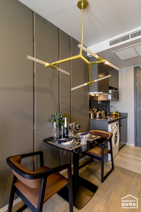 ถัดเข้ามาเป็นมุมทานอาหาร สามารถวางโต๊ะทานอาหารพร้อมเก้าอี้ได้ 2 ตัว