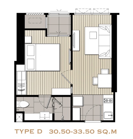 - 1 ห้องนอน ขนาด 34 ตร.ม.