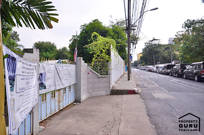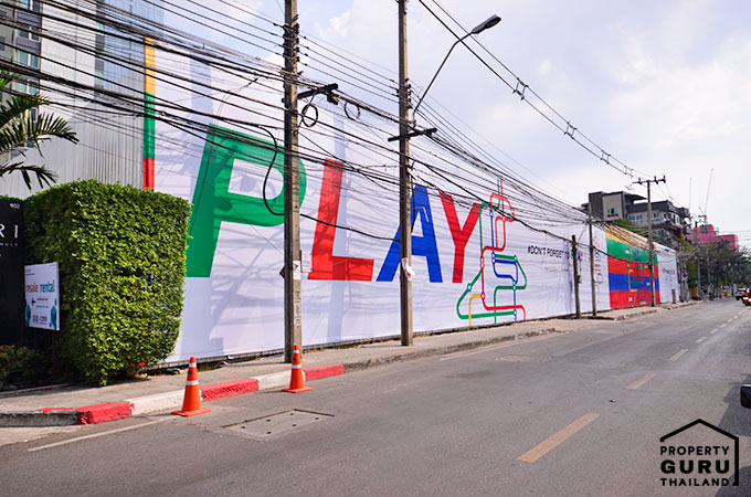 ข้ามถนนมาฝั่งที่ตั้งโครงการค่ะ โครงการเพื่อนบ้าน HQ by Sansiri ค่ะ