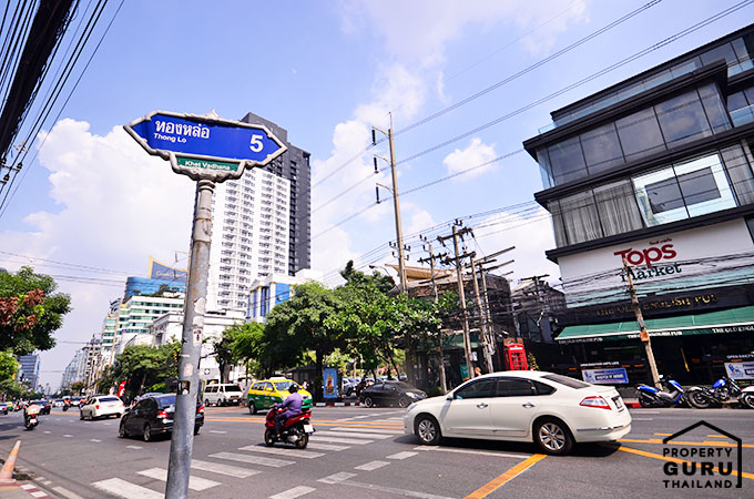 เดินไปเรื่อยๆ ถึงปากซอยทองหล่อ 1 เป็นที่ตั้งของ The Bangkok Thonglor จาก Land & Houses