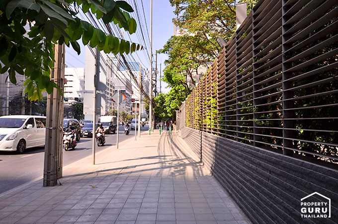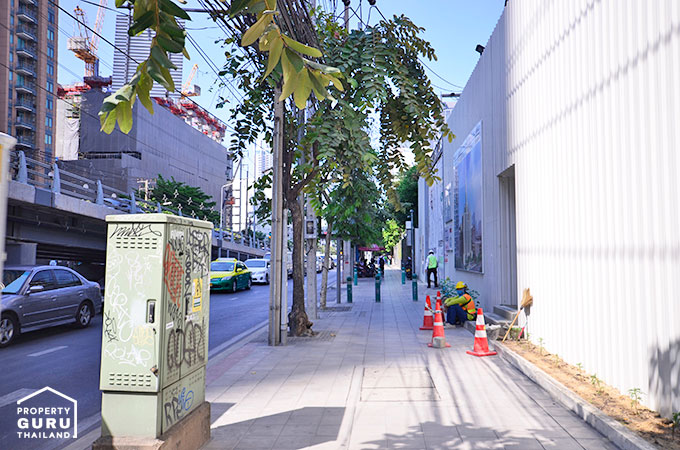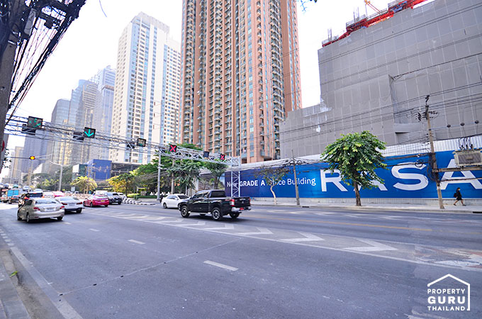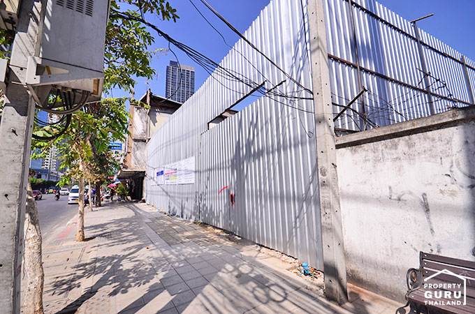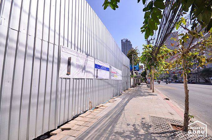 ถัดมาเป็นรั้วสีเข้มๆ ของ The Address Asoke จาก AP