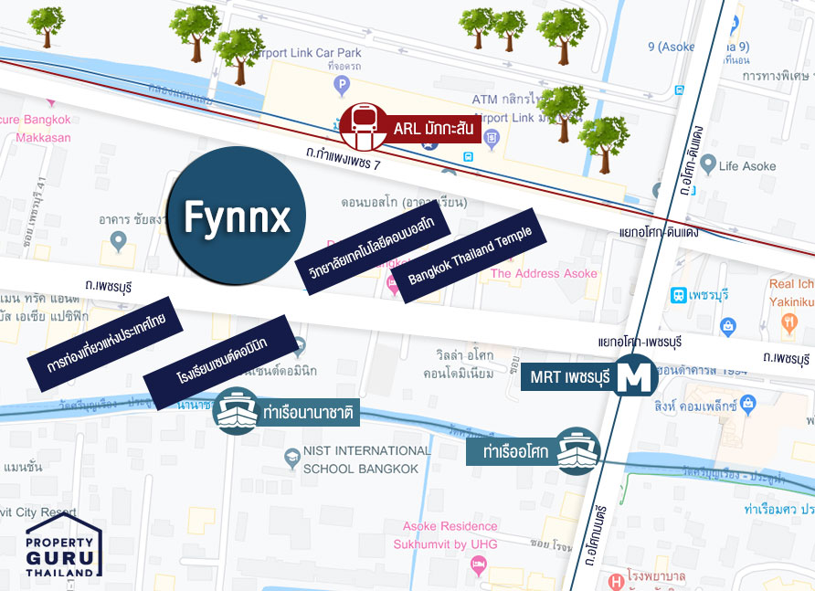 ฟินน์เอกซ์ (Fynnx) ระยะทางห่างจาก MRT สถานีเพชรบุรี (ทางออก 3) ประมาณ 500 ม.