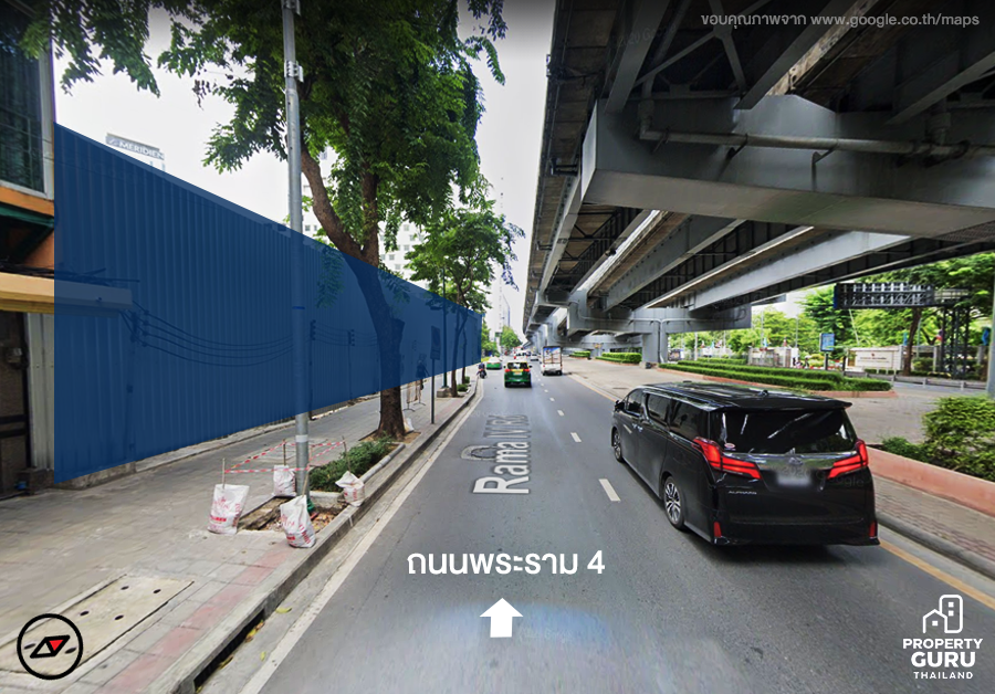 ภาพจาก Google Map เมื่อปี 2020 มีการปรับพื้นที่และล้อมรั้วไว้เรียบร้อย ด้านที่เห็นนี้คือ