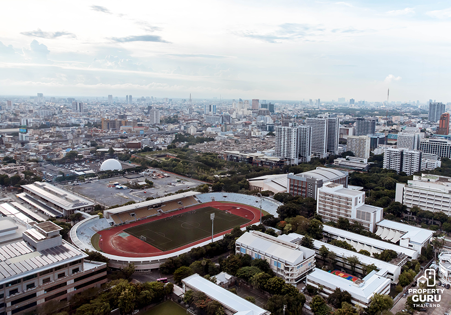 ภาพมุมสูงที่เราเห็นนี้เป็นมุมกว้างๆ ของสยาม เห็น "สนามศุภชลาศัย" ถ่ายไว้ตอนไปสามย่านมิตรทาวน์