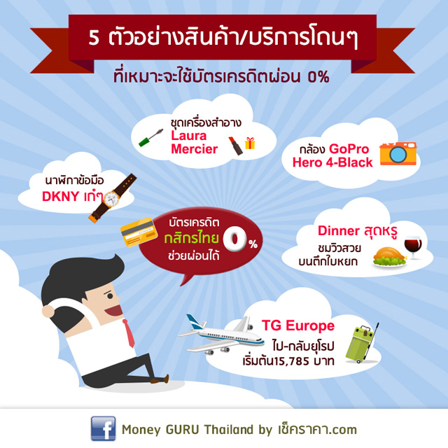 รายการที่สามารถแบ่งจ่าย 0% ได้คือ ค่าใช้จ่ายทุกประเภท เช่น กิน ช้อป เที่ยว