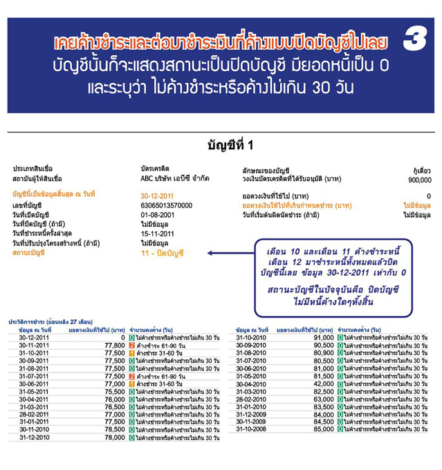 และเมื่อวันที่ 19 กันยายน 2557 ที่ผ่านมา ทางคณะกรรมการคุ้มครองข้อมูลเครดิต ได้ประกาศลงในหนังสือราชกิจจานุเบกษา เรื่องอายุข้อมูลในการประมวลผลข้อมูล การประมวลผลข้อมูลของบริษัทข้อมูลเครดิต และการส่งข้อมูลของสมาชิก โดยระบุว่า อายุข้อมูลในการประมวลผลของบริษัทข้อมูลเครดิต มีกำหนดไม่เกิน 3 ปี นับแต่วันที่บริษัทข้อมูลเครดิตได้รับข้อมูลจากสถาบันการเงินที่เป็นสมาชิก และกรณีที่ลูกหนี้มีการผิดนัดชำระหนี้สินเชื่อ ให้สถาบันการเงินที่เป็นสมาชิกนำส่งข้อมูลของลูกหนี้ต่อไปเป็นเวลา 5 ปี โดยให้เริ่มนับระยะเวลา 5 ปี ในวันถัดจากวันที่ลูกหนี้ผิดนัดชำระหนี้ครบ 90 วัน และกรณีที่ข้อมูลของลูกหนี้อยู่ระหว่างการประมวลผลของบริษัทข้อมูลเครดิตมีอายุของข้อมูลเกินกว่า 8 ปี นับแต่วันที่ลูกค้าผิดนัดชำระหนี้เกิน 90 วัน ให้บริษัทข้อมูลเครดิตหยุดการประมวลผลข้อมูล