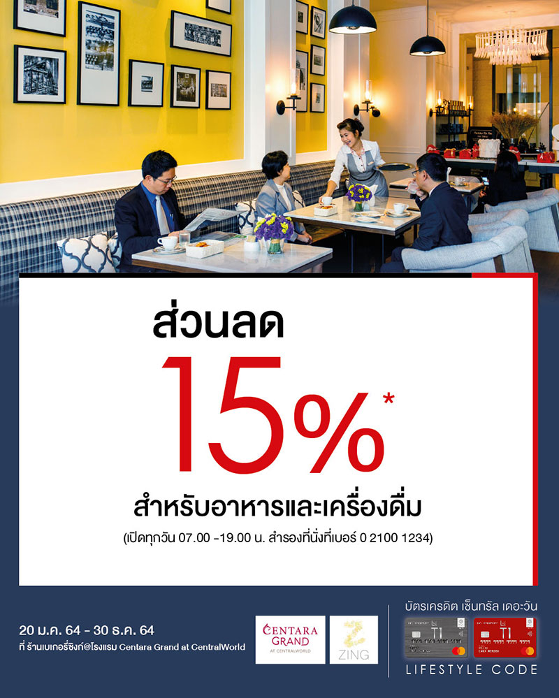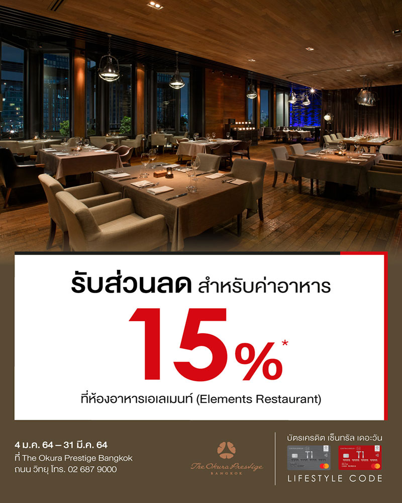 ส่วนลด 15%* สำหรับค่าอาหารเมนูอะลาคาร์ทและเครื่องดื่มที่ไม่มีแอลกอฮอล์