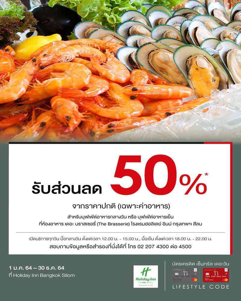 ส่วนลด 50%* สำหรับบุฟเฟ่ต์นานาชาติมื้อกลางวัน, บุฟเฟ่ต์ซีฟู้ด,บุฟเฟ่ต์ติ่มซำ, บุฟเฟ่ต์อาหารญี่ปุ่น (ไม่รวมเครื่องดื่ม)