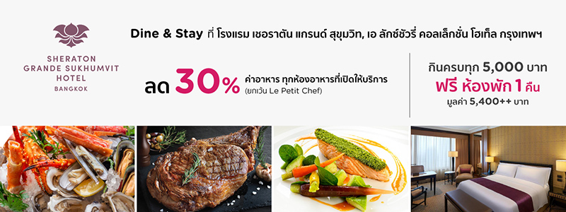 Dine & Stay ที่ห้องอาหาร โรงแรม รอยัล ออคิด เชอราตัน โฮเท็ล แอนด์ ทาวเวอร์ส (Royal Orchid Sheraton Hotel & Towers)