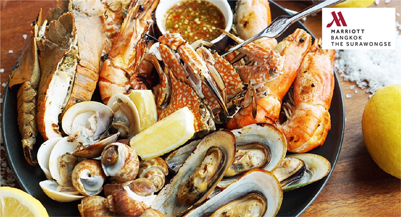 ขอเชิญทุกท่านมาลิ้มลองอาหารทะเลแสนอร่อยที่เชฟได้ทำการยกระดับไลน์บุฟเฟต์ให้ยิ่งใหญ่กว่าเดิม คุณจะได้พบกับอาหารทะเลคุณภาพสดใหม่ สไตล์ seafood on ice ไม่ว่าจะเป็นกุ้งและปูสดๆ หอยนางรมชนิดต่างๆ หอยเชลล์ และอื่นๆอีกมากมาย ความพิเศษไม่ได้หมดลงเพียงเท่านี้ คุณยังจะได้พบกับมุมอาหารญี่ปุ่นที่มีซูชิและซาชิมิต่างๆ หลากชนิด นอกจากนี้อาหารทะเลต่างๆสามารถนำไปปรุงร้อน ทั้งย่าง อบ ทอด จากครัวเปิดของห้องอาหาร นอกจากนี้ แขกทุกท่านจะได้รับกุ้งล็อบสเตอร์ย่างคนละครึ่งตัวอีกด้วย ปิดท้ายค่ำคืนพิเศษด้วยของหวานชนิดต่างๆ รวมถึงไอศครีมหลากรส