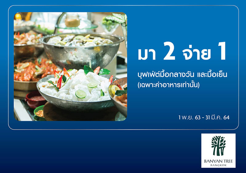 มา 2 จ่าย 1* สำหรับบุฟเฟ่ต์นานาชาติมื้อกลางวันและมื้อค่ำ