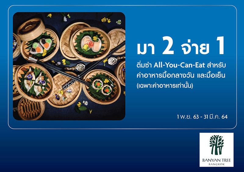- เมื่อชำระด้วยบัตรเครดิตยูโอบีทุกประเภท รับส่วนลด มา 2 จ่าย 1 ติ่มซำ All-You-Can-Eat (เฉพาะค่าอาหารเท่านั้น)