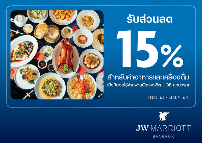 - เมื่อชำระด้วยบัตรเครดิตยูโอบีทุกประเภท รับส่วนลด 15% สำหรับค่าอาหาร