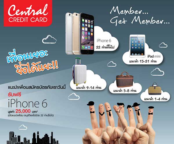 - แนะนำเพื่อนสมัครบัตรเครดิต 15 ท่าน รับฟรี iPhone 6 ความจุ 16 GB 1 เครื่อง