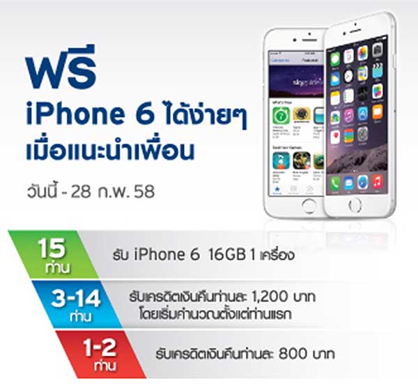 ต่อที่ 2 รับฟรี iPhone 6 รุ่น 16 GB 1 เครื่อง