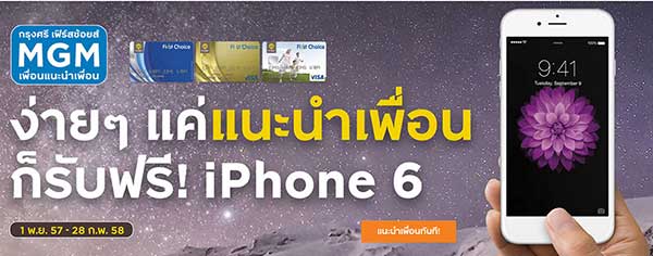 แนะนำเพื่อนสมัครบัตรเครดิต รับฟรี iPhone 6