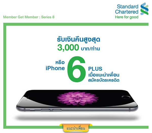 Member Get Member : Series 8 สิทธิพิเศษเฉพาะสมาชิกบัตรเครดิตสแตนดาร์ด ชาร์เตอร์ด เมื่อแนะนำเพื่อนสมัครบัตรเครดิตและได้รับการอนุมัติ