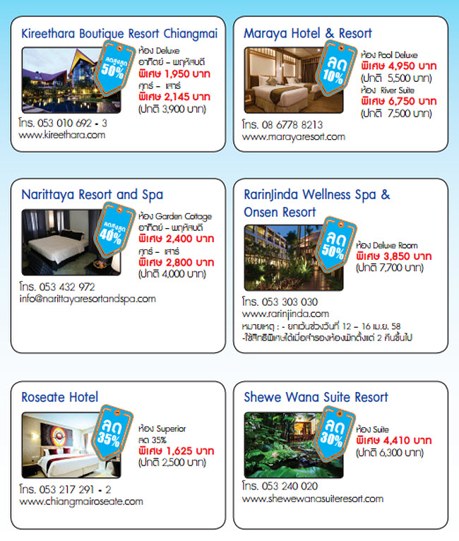 - ยกเว้นการเข้าพักวันหยุดนักขัตฤกษ์ และช่วงเทศกาล 23 ธ.ค. 57-5 ม.ค. 58, 12-18 เม.ย. 58