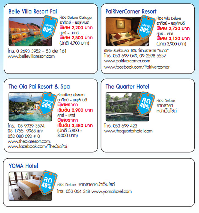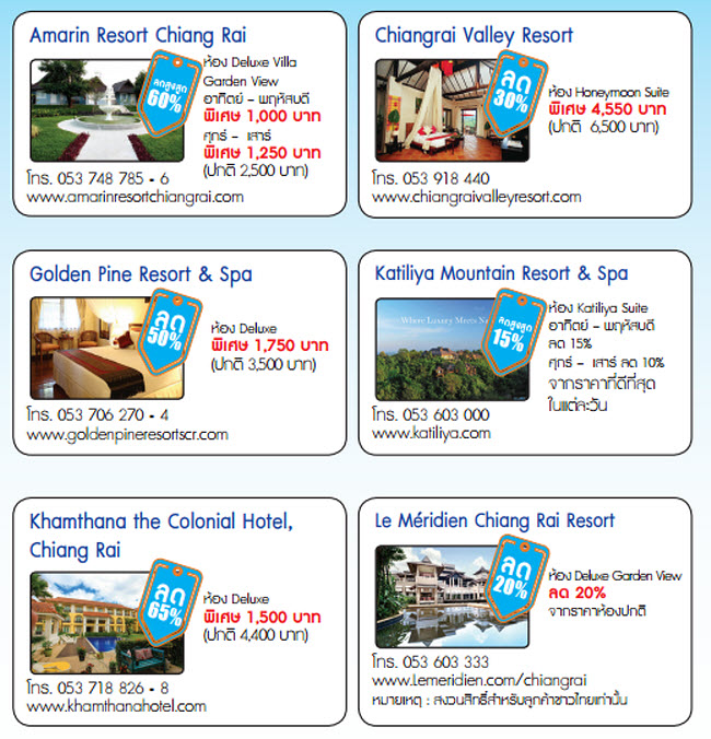 - ส่วนลด 15% ค่าอาหาร ณ ห้องอาหารที่เข้าร่วมรายการ