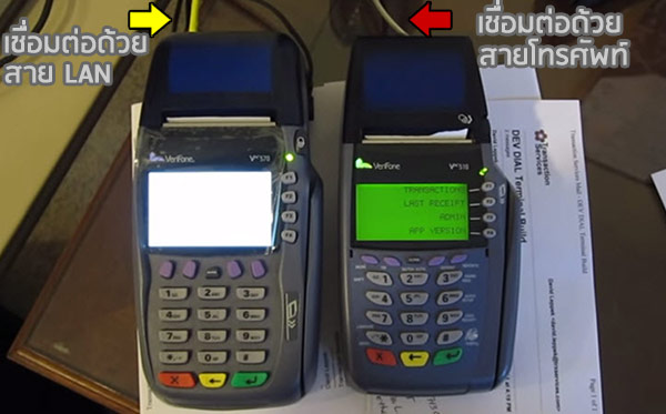รูปแบบการเชื่อมต่อเครื่องรูดบัตรฯ ระบบ EDC ด้วยสาย LAN และแบบสายโทรศัพท์ปกติ